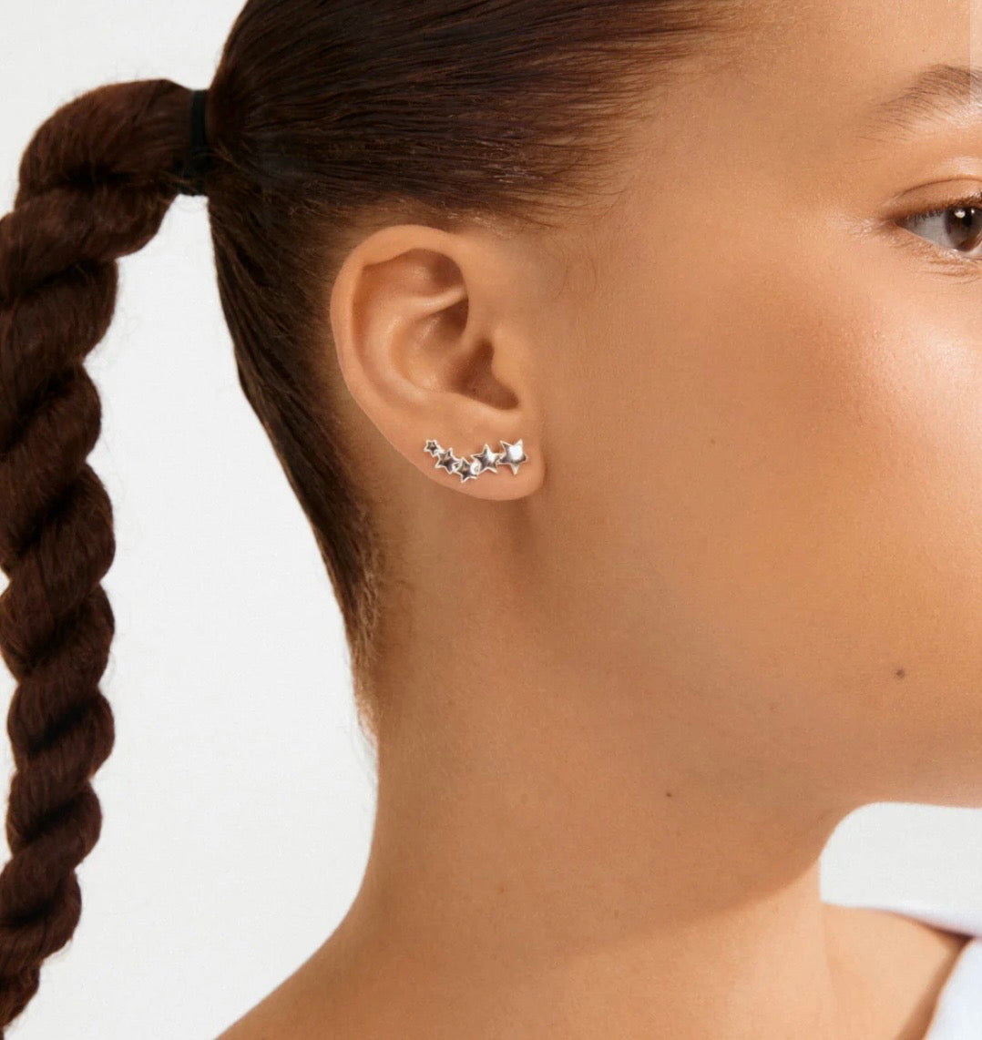 When you wish upon a star, makes no difference who you are. Irresistible silver-plated earrings with an asymmetrical star design. One is an understated little stud, the other a shooting star that curves up along the ear. A set of earrings that will go with everything and will soon become your new favourite accessory