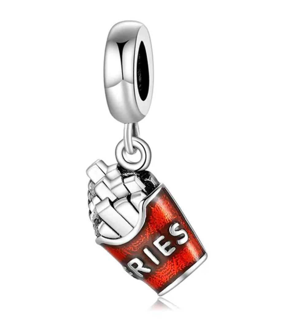 Add a fun and flavorful twist to your charm collection with this adorable French Fries charm! Crafted from high-quality 925 sterling silver and detailed with vibrant red enamel, this miniature fast food favorite is a playful nod to your love for snacks and style. Perfect for bracelets, necklaces, or keychains, it makes a quirky gift or a unique treat for yourself.