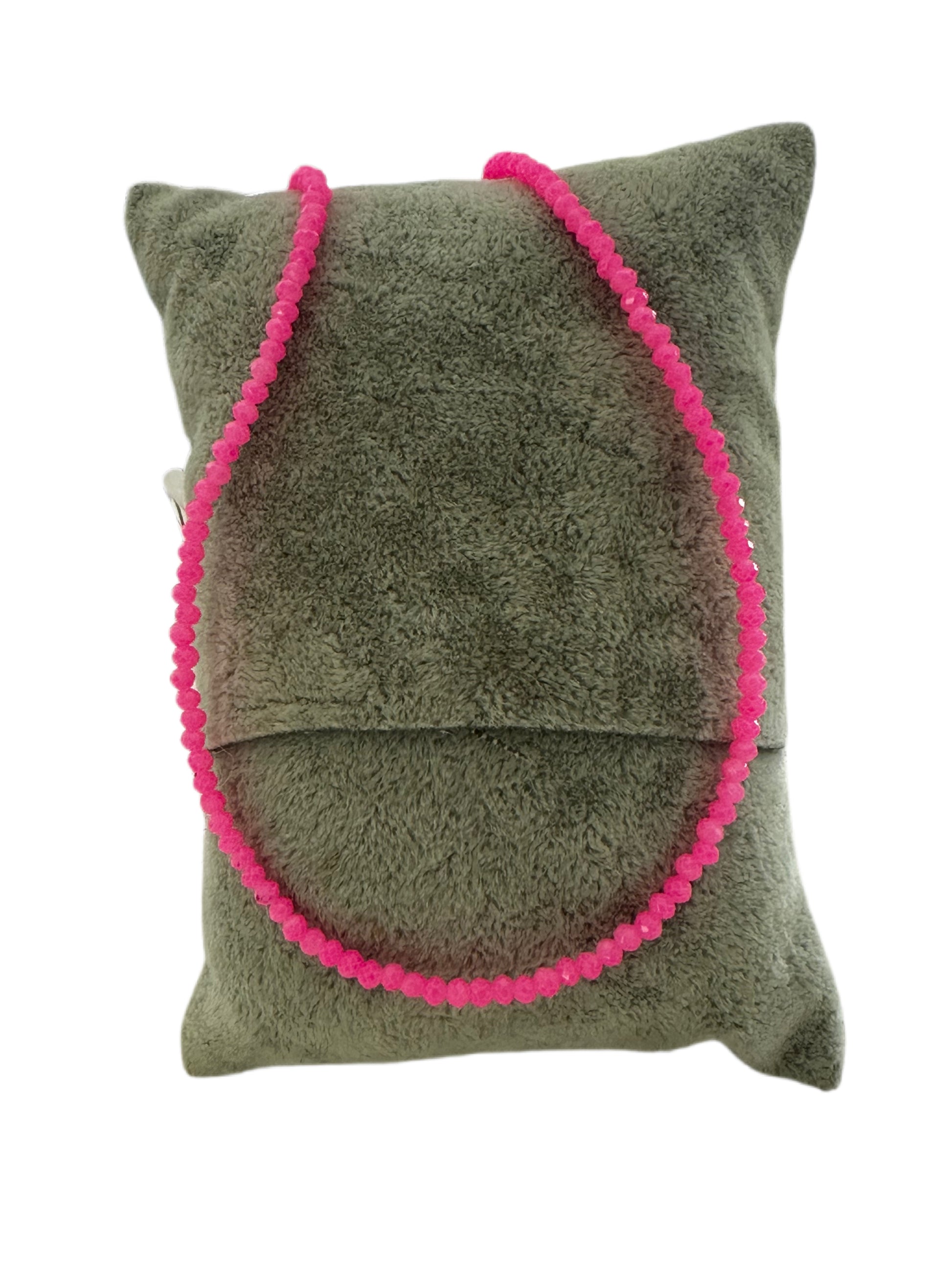 Add a bold pop of color to your jewelry collection with this dazzling Fuchsia Pink Crystal Necklace. Featuring vibrant faceted crystals that catch the light beautifully, this piece is perfect for both everyday glamour and special occasions.