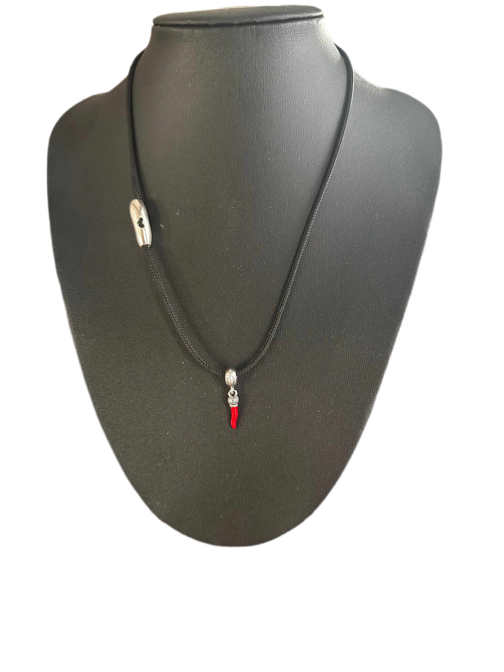 A playful yet elegant piece that blends minimal style with a touch of bold charm. This necklace features a sleek black cord, a beautifully crafted clasp, and a striking red enamel chili pepper pendant made from 925 sterling silver.